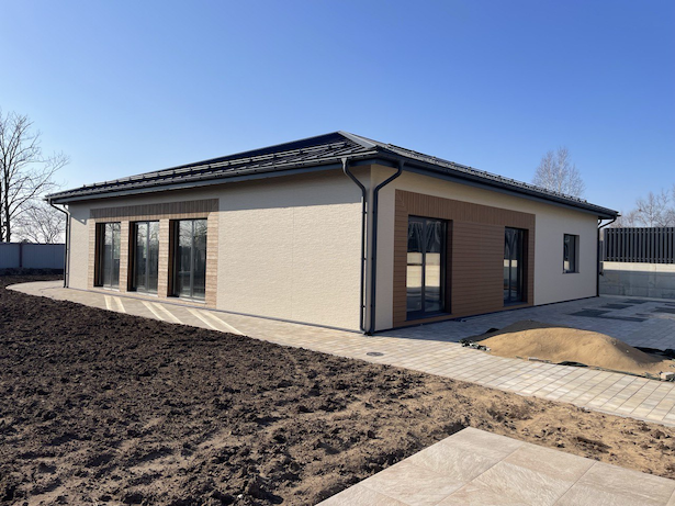 Отделка готового дома согласно техническому заданию. Нанесение выбранного отделочного материала, установка окон.